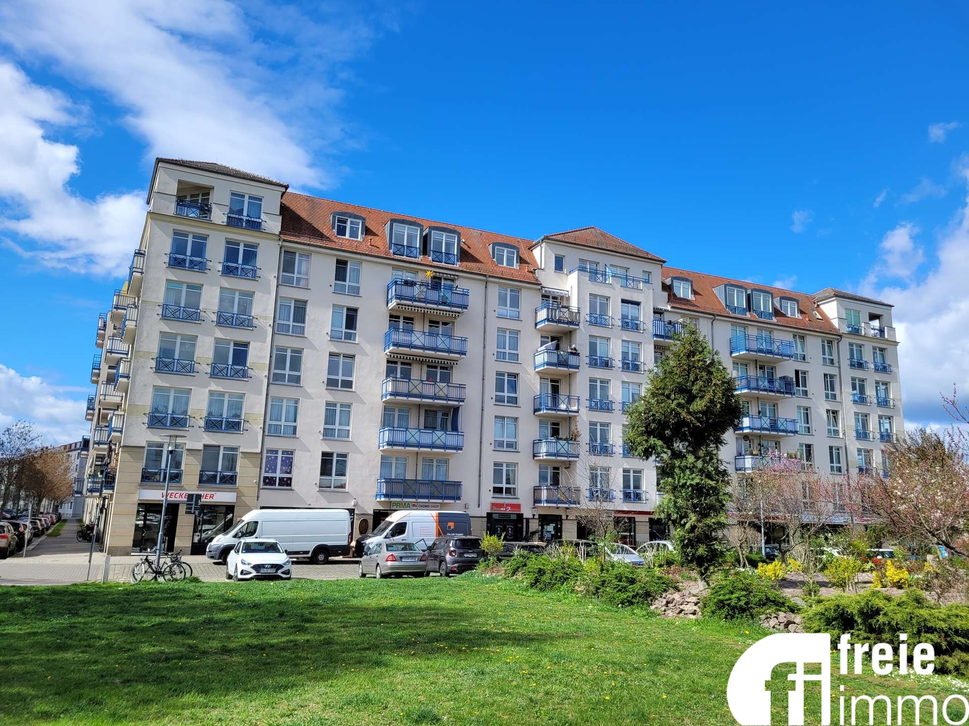 Dieses interessante Wohnensemble wurde im Jahr 1995 als Wohn- und Geschäftshaus in einer abschließenden Eckbebauung mit einem großzügigen Innenhof im beliebten Stadtteil Johannstadt-Nord errichtet. Die weißen Fassaden mit den leuchtend blauen Balkonverkleidungen sind schon beim Queren der Waldschlößchenbrücke zu sehen. In der 1. Etage, die auch bequem mit einem Aufzug zu erreichen ist, steht eine ansprechende lichtdurchflutete 3-Zimmer-Wohnung mit ca. 65 m² zum Verkauf. Die Wohnung ist vermietet und erwirtschaftet eine Jahreskaltmiete von 5.304,00 €. Eine interessante Zimmeraufteilung mit zentralem Flur, von dem Sie in das Wohnzimmer mit einer großen Fensterfront und der abgeteilten innenliegende Küche, zu den beiden Schlafzimmern und dem Bad mit Wanne (innenliegend), gelangen. Vom Wohnzimmer und den Schlafzimmern, die in Richtung Ost zeigen, genießt man einen schönen Weitblick über die Elbe bis hin zu den Weinbergen und den bekannten Schlössern in Loschwitz. Zur Wohnung gehört ein Duplexstellplatz in der Tiefgarage, der zurzeit nicht vermietet ist und somit noch eine weitere monatliche Mieteinnahme erzielt werden kann. Die nahe gelegenen Elbwiesen mit Spielplätzen und einem Biergarten sind in wenigen Minuten zu erreichen. Nutzen Sie die Möglichkeit, sich vor Ort ein Bild zu machen und vereinbaren Sie einen Besichtigungstermin mit uns. Wir freuen uns auf Ihren Besuch.Ausstattung
