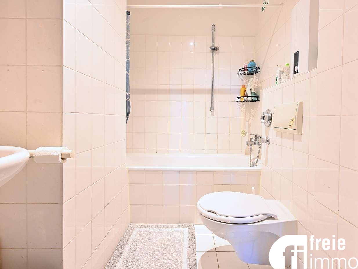 Die Wohnung im 1. Obergeschoss ist nach Nord-Ost ausgerichtet und verfügt über eine kleine innenliegende geflieste Küche, die vom Wohnzimmer abgetrennt ist. Ein großes helles Wohnzimmer mit bodentiefen Fenstern bietet einen freien Blick ins grüne Umfeld. Des Weiteren gibt es ein innenliegendes gefliestes Bad mit Wanne, ein Schlafzimmer, ein Kinder/Arbeitszimmer mit Laminatboden, sowie einen kleinen zentralen Flur. Mit etwas handwerklichem Geschick können individuelle Ausstattungswünsche umgesetzt werden, um ein gemütliches neues Zuhause zu gestalten. Zur Wohnung gehören ein Duplex-Tiefgaragenstellplatz (6.000 €) und ein Kellerabteil. Der Fahrradraum wird gemeinschaftlich genutzt, ebenso steht im Kellerbereich ein Wäschetrockner mit einen individuellen Stromanschluss für jede Wohnung. Energieausweis: nach Verbrauch, 112kWh/(m²•a), Energieeffizienzklasse D, Baujahr 1995, Energieträger Fernwärme, gültig bis: 15.08.2028Lage