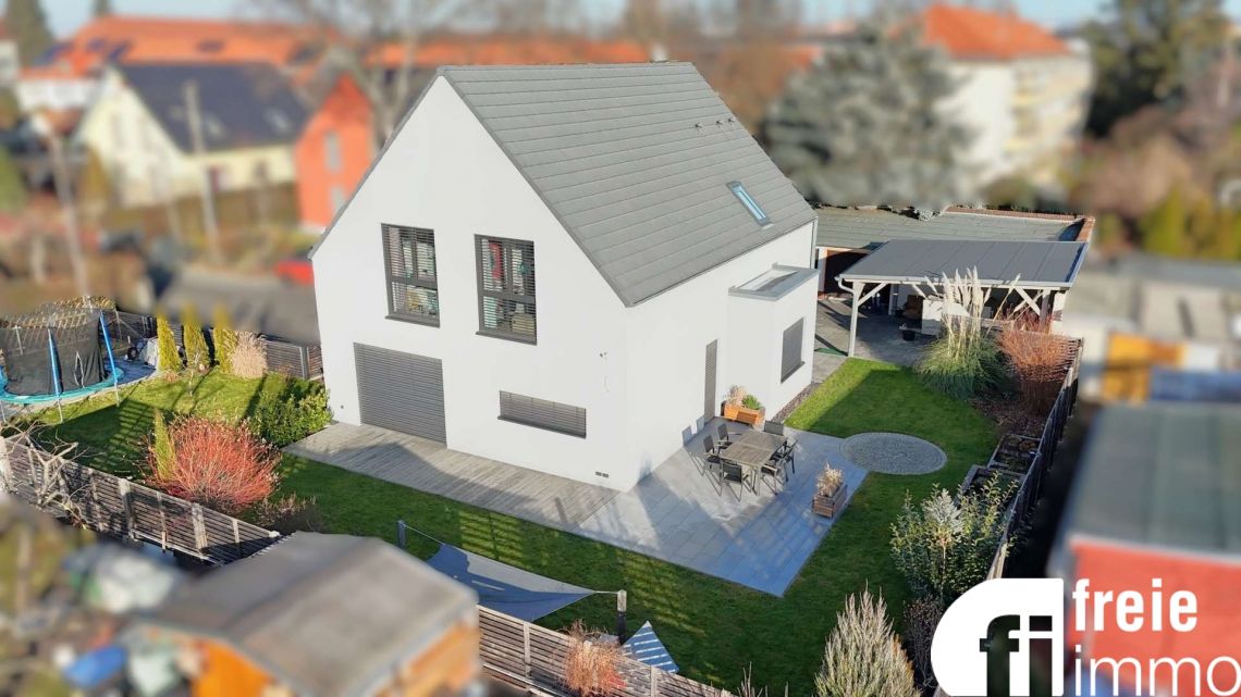 Dieses moderne, massiv gebaute Einfamilienhaus vereint zeitgemäße Architektur mit hochwertiger Bauqualität und bietet Wohnkomfort auf gehobenem Niveau. Auf einem großzügigen Grundstück gelegen, überzeugt die Immobilie durch einen liebevoll angelegten Gartenbereich sowie praktische Stellmöglichkeiten in Form eines Carports und einer Garage. Moderne Haustechnik und sorgfältig ausgewählte, hochwertige Materialien schaffen in allen Räumen ein komfortables und zugleich individuelles Wohnambiente. Das 1,5-geschossige Wohnhaus wurde auf einer soliden Bodenplatte in bewährter Ytong-Bauweise errichtet. Mit einer Wandstärke von ca. 36,5 cm verfügt das Haus über ausgezeichnete energetische Eigenschaften und sorgt ganzjährig für ein angenehmes Wohnklima. Das klassische Spitzdach mit langlebigen, modernen Betonziegeln unterstreicht die zeitgemäße Architektur des Hauses und fügt sich harmonisch in die gepflegte Nachbarschaft ein. Ein besonderes Highlight ist das großzügige Grundstück in einer ruhigen Sackgasse – ideal für alle, die Privatsphäre und entspanntes Wohnen schätzen. Die Umgebung ist geprägt von Einfamilienhäusern, kleineren Mehrfamilienhäusern sowie liebevoll angelegten Gartengrundstücken und bietet damit eine attraktive Mischung aus Ruhe und gewachsener Wohnstruktur. Für ausreichend Stellfläche ist ebenfalls gesorgt: Neben einer Garagenanlage mit drei Garagen (Baujahr ca. 1968) steht ein moderner Doppelcarport aus dem Jahr 2019 zur Verfügung. Damit bietet die Immobilie komfortable Parkmöglichkeiten für mehrere Fahrzeuge. Insgesamt präsentiert sich dieses Haus mit einer Wohnfläche von ca. 160m² als ideale Wahl für Familien oder alle, die großzügiges Wohnen in angenehmer Nachbarschaft zu schätzen wissen. Nutzen Sie die Gelegenheit, sich persönlich von dieser interessanten Immobilie zu überzeugen, und vereinbaren Sie mit uns einen Besichtigungstermin. Wir freuen uns auf Ihre Anfrage.Ausstattung